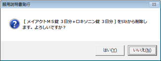 • [F3 削除]:服用説明書に登録されている薬剤を削除する。複数薬剤が登録されている場合、選択されている薬剤が削除される。