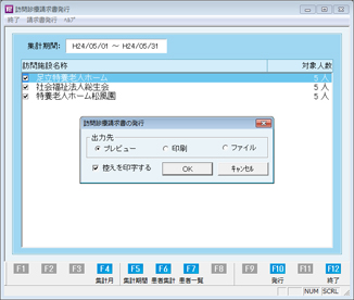 このリストから該当施設を選択して、[F10 発行]をクリックすると請求書が発行される。