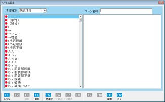 [ページの設定]画面が表示されるので、[ページ名称]を入力。次に左の病名リストから該当するものを選択し[F4 選択]ボタンをクリックすると、その目次に登録される病名が右側に移動する。