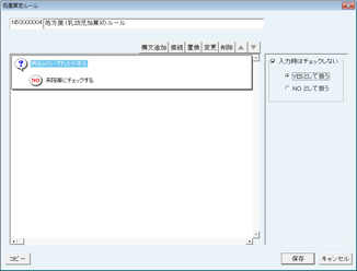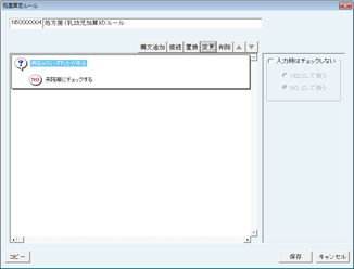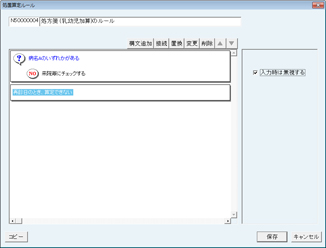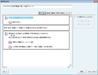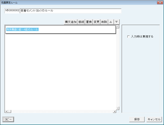 画面の一番上に「N5xxxxxxx 保険処置項目名称のルール」と表示される。(Nの次の5は新たに作成されたルールを表す)