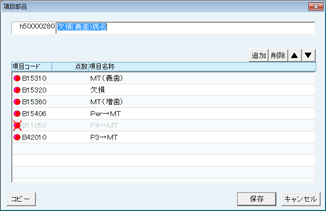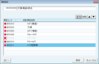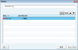 - [追加]ボタンの替わりに[コピー]ボタンをクリックすると既に登録されている項目部品から選択できる。
