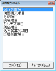 [項目種別の選択]画面より追加したい項目種別を選択し、[OK(F12)]ボタンをクリックする。