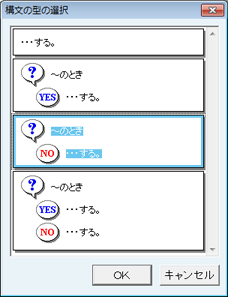 [構文の型の選択]画面より型を選択し、[OK]ボタンをクリックする。