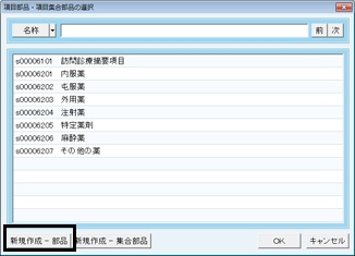 一覧に適当なものが無い場合は画面左下の[新規作成-部品]ボタンをクリックする。
