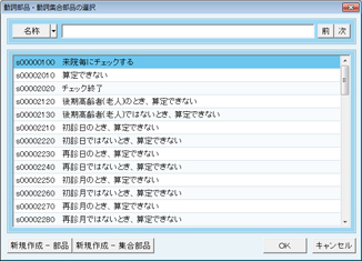 [条件部品・条件集合部品の選択]画面より、チェックに必要な部品を選択する。