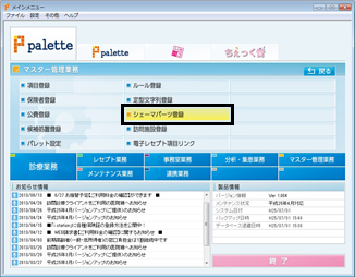 シェーマパーツが完成すれば、[終了]ボタンをクリック。[マスター管理業務]メニュー画面に戻る。