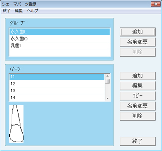 - 削除:登録したパーツを削除する。