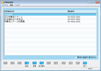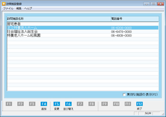 [訪問施設登録]画面では、このほか施設リストの順番を並べ替えることもできる。操作は、[F6 並べ替え]ボタンをクリックし、[訪問施設の並べ替え]画面を表示させて、[上に移動][下に移動] ボタンで順番を変更できる。