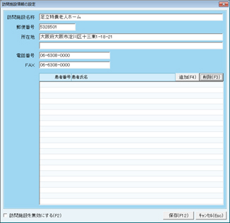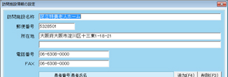 [訪問施設登録]画面が表示される。新規に登録する場合は、[F4][追加]をクリック。[訪問施設情報の設定]画面が出てくるので、各項目を入力する。