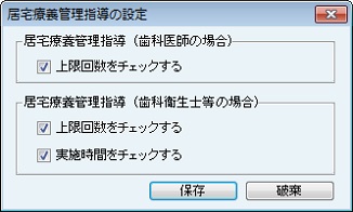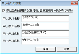 [診療内容登録の設定]画面が表示される。診療内容登録のとき動作する機能を設定する。