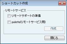 リモートサポートを受ける場合に、[リモートサポートの準備]と[palette(リモートサービス用)]にチェックを付けて[作成]ボタンをクリックすると、デスクトップに[リモートサポートの準備]と[palette(リモートサービス用)]のショートカットが作成される。