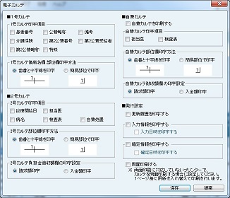 [レセプト関連項目の設定]画面が表示される。[保険処置項目算定日付印字]でレセプトに日付が印字される保険処置項目を設定する。その他、レセプトの摘要欄に記載が必要な項目を設定する。