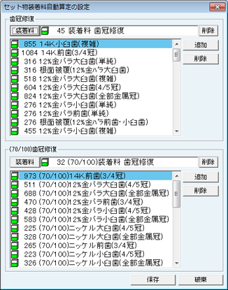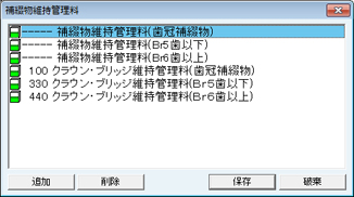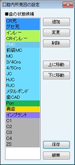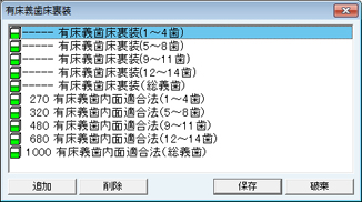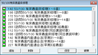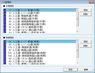 [人口歯項目]画面が表示される。人口歯の片側項目・両側項目の青本項目を設定する。