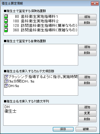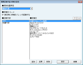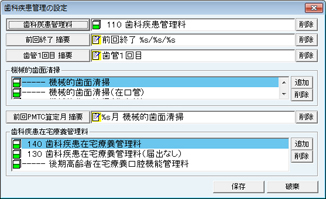 [歯科疾患管理の設定]画面が表示される。歯科疾患管理の算定時に挿入される摘要欄文を設定する。