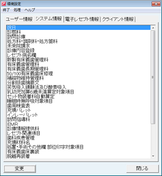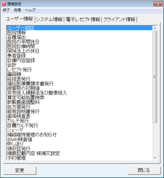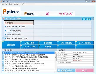 paletteを使用する上で基本となる情報を登録したり、基本的な条件の設定をおこなう機能が集められています。環境設定を詳細にわたって整備しておくことで、日常的なpaletteの運用がスムーズにおこなえます。環境設定は、《ユーザー情報》《システム情報》《電子レセプト情報》《クライアント情報》の4つに分類され、それぞれに各設定項目があります。