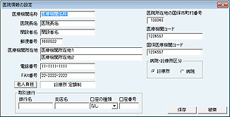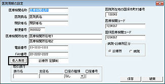 [医院情報の設定]画面が表示される。各項目を入力する。