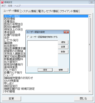 [環境設定]より[ユーザー認証]を選択し、[変更]ボタンをクリックします。