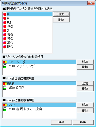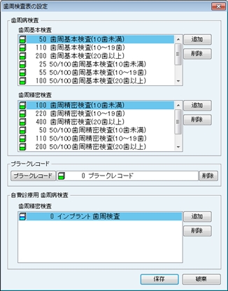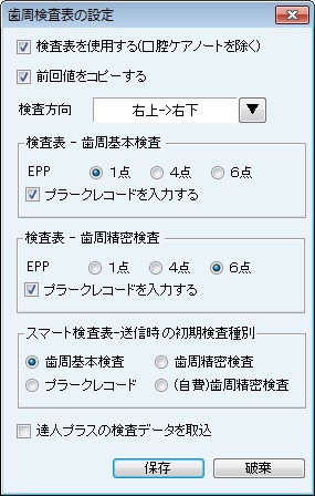 [歯周検査表の設定]画面が表示される。