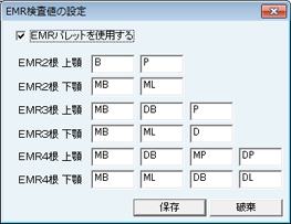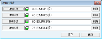[EMRの設定]画面が表示される。根管長やリーマーNo.を入力するEMRの入力画面(EMRパレット)が開く保険処置項目を設定する。