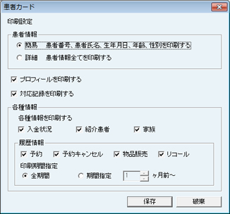 服用説明書に発行日を印字する場合は、[印刷設定]にある[発行日を印刷する]にチェックを付ける。患者氏名を印字する場合は、[患者氏名を印刷する]にチェックを付ける。
