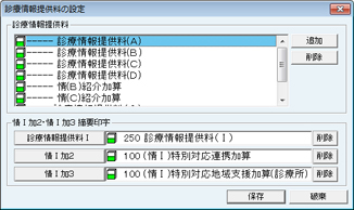 [診療情報提供料の設定]画面が表示される。[診療情報提供料]を設定する。