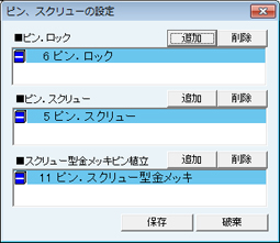 [ピン、スクリューの設定]画面が表示される。ピン、スクリューの青本項目を設定する。