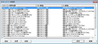 [OA+Ctの設定]画面が表示される。OA+Ctの保険処置項目および薬価項目を設定する。