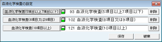 [血液化学検査の設定]画面が表示される。血液化学検査で算定する項目を設定する。
