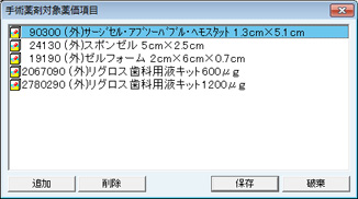 [手術薬剤対象薬価項目]画面が表示される。手術薬剤の薬価項目を設定する。