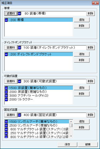[矯正項目]画面が表示される。矯正関連処置の設定をする。