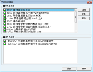 [主従手術項目]画面が表示される。主たる手術・従たる手術の項目を設定する。