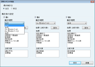 指標の分析期間を設定する。期間を決め、集計単位を選択する。