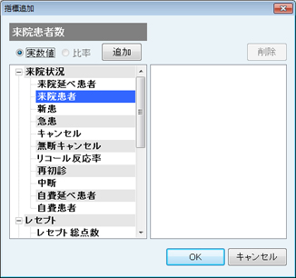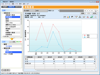 たとえば[来院延べ患者]指標で[性別]の分類を個別分類のカテゴリーでつくったとする。