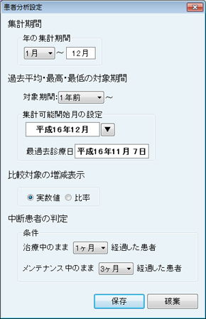 - 分析対象の住所は、患者情報に登録されている自宅住所(郵便番号)を参照している。自宅と異なる住所(勤務先など)で集計したい場合は、患者カードにある[分析用住所]に登録する。
