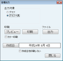 [出力対象]で、グラフのみか、グラフと表の同時出力かを選択する。