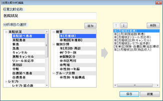 比較対象項目を選択し(選択可能な対象項目がアクティブになっている)[保存]ボタンをクリック。