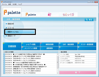 メインメニューの[分析・集患業務]画面で[無断キャンセル]をクリックする。