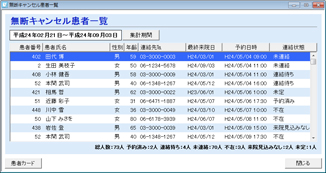 無断キャンセル患者を検索
