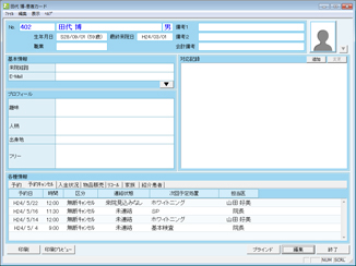 患者を選択し、左下の[患者カード]ボタンをクリックすると、[患者カード]画面が表示される。患者の予約履歴などの情報を閲覧し、対応を検討する。