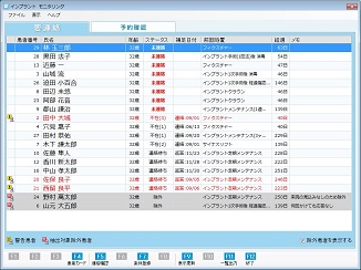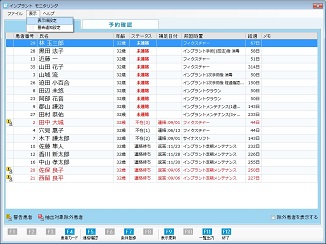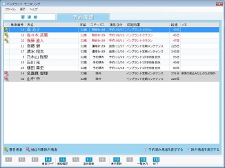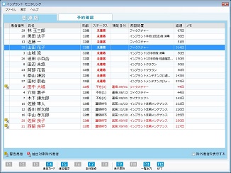[予約済み患者を表示する]をチェック状態にすると、一覧表示に[予約済み]ステータスの患者が表示される。また [除外患者を表示する] にチェックを付けると、一覧表示に[除外]設定の患者が表示される。