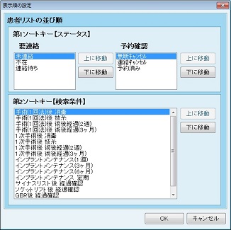 表示順序は、検索条件によって重要度が異なるので、医院で想定している重要度を設定する機能となる。