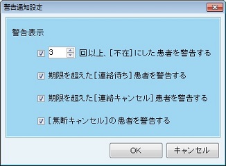 警告設定は、同じステータスにおいても緊急性が高い患者をピックアップする機能となる。また来院する見込みがない患者を発見しやすくする為にも使用できる。