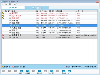 [インプラント モニタリング]画面では、登録されている条件にしたがって来院していない患者への連絡状況(ステータス)を一覧で表示する。また画面上部に表示されている患者程、連絡する優先度が高い。