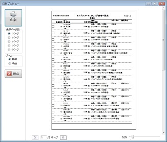 一覧画面で表示している[患者番号]、[患者氏名]、[患者年齢]、[ステータス]、[補足日付]、[前回処置]、[前回処置からの経過日数]、[メモ]が、出力される。また行の先頭に連絡の有無を確認できるように[チェック欄]を出力している。