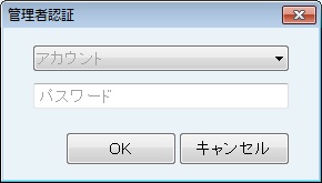 [管理者認証]画面では管理者アカウントの認証を行う。アカウントを選択。パスワードを入力後、[OK]ボタンで認証する。