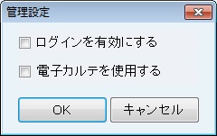 管理者を登録または認証後、[管理設定]画面が表示される。ログインを有効にする場合は[ログインを有効にする]をチェック。電子カルテを有効にする場合は[電子カルテを使用する]をチェック。電子カルテをチェックした際に[電子カルテのご利用に関する確認事項]画面が表示されるので、内容を確認し[確認しました]ボタンをクリック。電子カルテを有効にする場合、ログインも自動で有効になる。