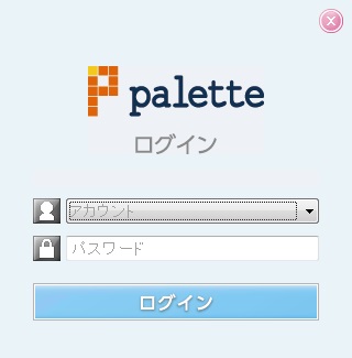ログイン後、palette起動中は常に[ログイン管理]画面にログイン中のアカウント名が表示される。別のアカウントでログインし直したい場合、ログアウトを行う。ログアウトは、[ログイン管理]画面の[OUT]ボタンをクリックするか、Ctrl+Eキーを押す。ログアウト後、[ログイン管理]画面の[IN]ボタンをクリックするか、Ctrl+Eキーを押すことで再度[ログイン]画面からログインできる。