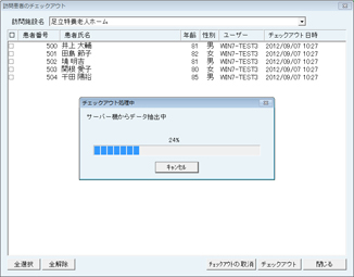 paletteモバイルを使用するためには、訪問診療用PCに、訪問診療する対象患者のデータを移動しておく必要がある。これをpaletteモバイルのシステムでは「チェックアウト」と呼んでいる。