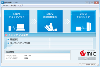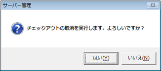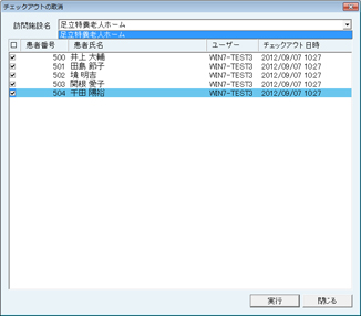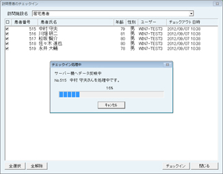 「チェックアウト」「チェックイン」の操作は、他のクライアント機が稼働していない状態でおこなう。サーバー機に他のクライアント機が接続してデータを操作している状態では、サーバー機側の患者データを訪問診療用PCへ反映・更新できないので、患者データを移動( チェックアウト) することができない。