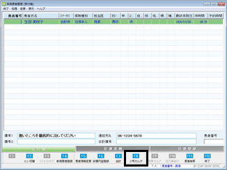 診療内容登録が完了して、[来院患者管理]画面に戻ると、[F8 2号カルテ]ボタンが有効になり、2号カルテの発行が可能になります。[F8 2号カルテ]ボタンをクリックして、[2号カルテ発行]画面が表示されます。[印刷範囲]の日付を確認し、変更する場合は[F4 印字設定]ボタンをクリックします。